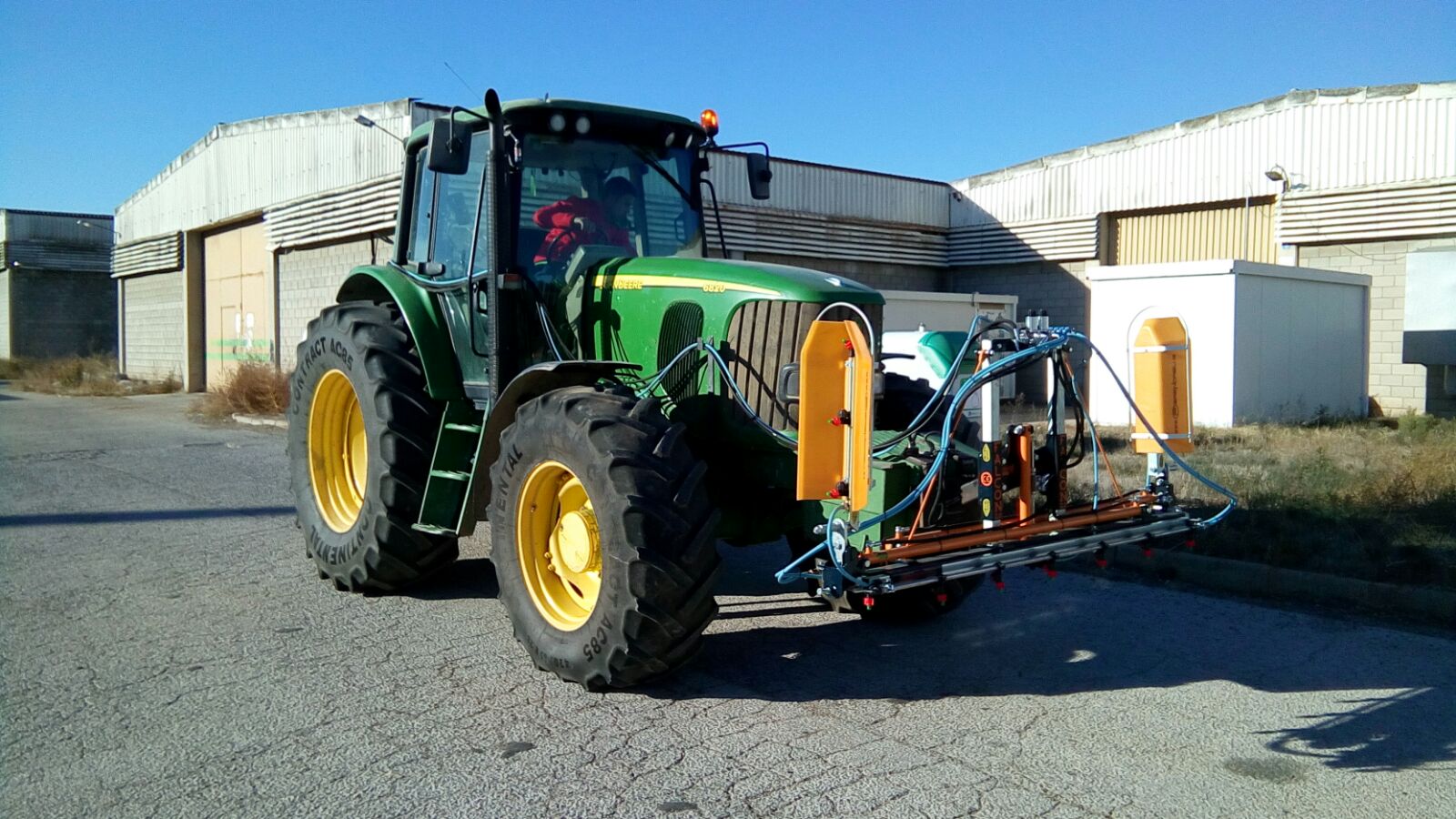 Adaptable en el frontal del tractor, sistema de regulación de inclinación máxima de las pantallas manual, sistemas de guía de tubería de agua, pantallas de 600mm con 2 boquillas fijas + 1 regulable de serie con sistema anti-goteo, protectores metálicos reforzados, pantallas de polietileno de alta densidad reforzado, sistemas anti-shock con retorno por muelle regulable en esfuerzo. Dispone de engrasadores en todas sus articulaciones, boquillas anti-deriva de serie, acabados estándar en base de zinc, caballete con ruedas incorporadas de serie y sistema de enganche rápido al tractor sin esfuerzos. Dispone de una gran cantidad de opcionales para adaptar la máquina según las necesidades de cada tipo de trabajo.