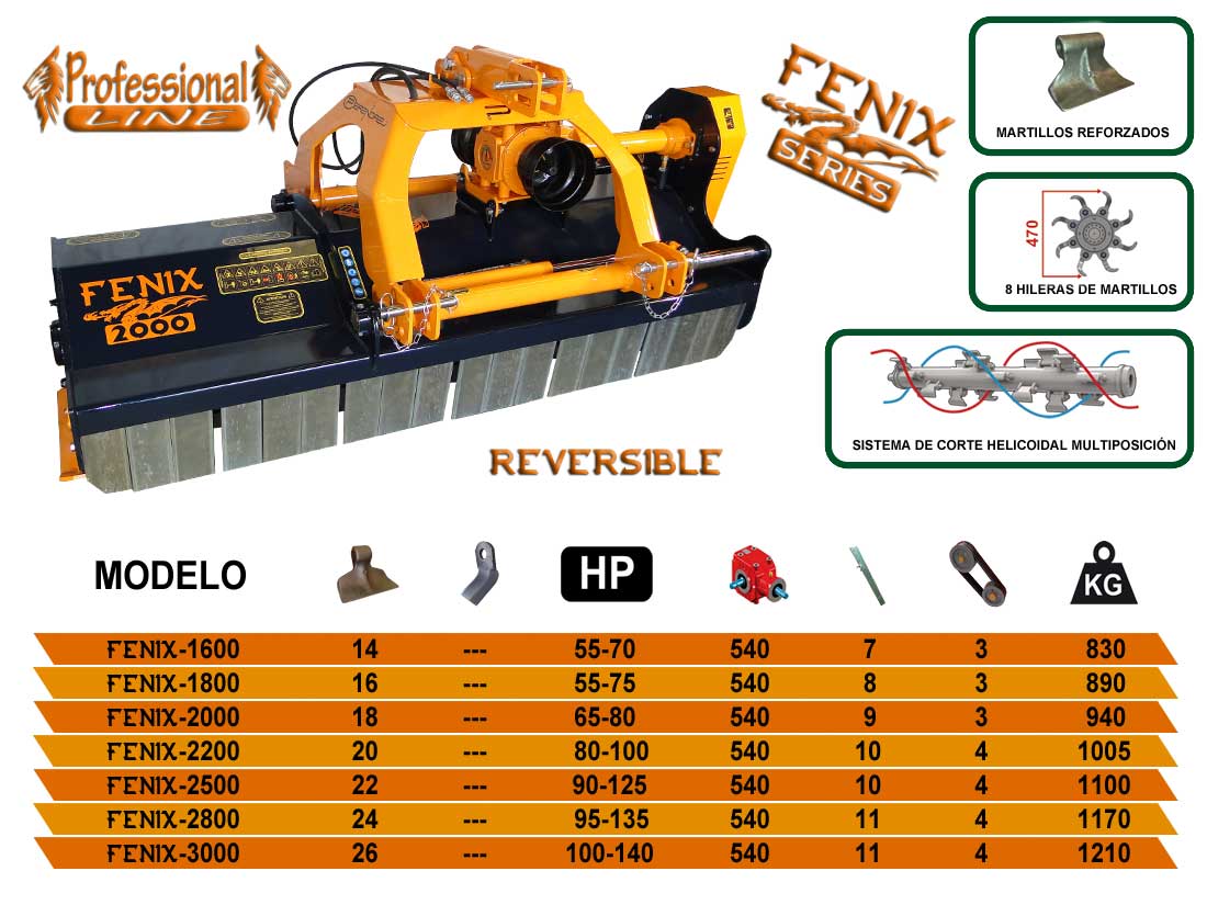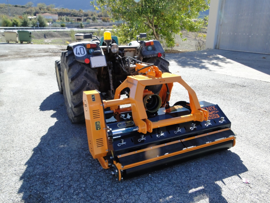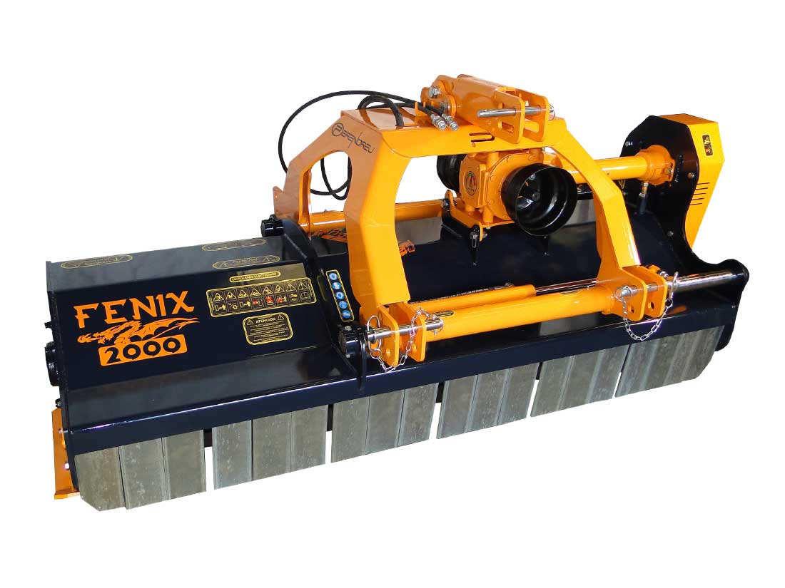 Trituradora de restos de poda profesional extra-reforzada modelo FENIX de la marca Perendreu versión reversible donde encontraran una maquina ideal para siega de la hierba y el triturado de las ramas de poda hasta 15cm de diámetro. Chasis principal de la trituradora fabricado en chapa de 8+6mm con triple hilera de retenedores internos en forma de “U” fabricados por Perendreu en platina anti desgaste. Palas delanteras de fabricación propia con contorno de pala completamente cerrado, en acabado en base de Zinc con barra de soporte reforzada y una boca de entrada de 320mm. Barras guía de la torreta muy reforzadas y en baño de Cromo de alta longevidad.
