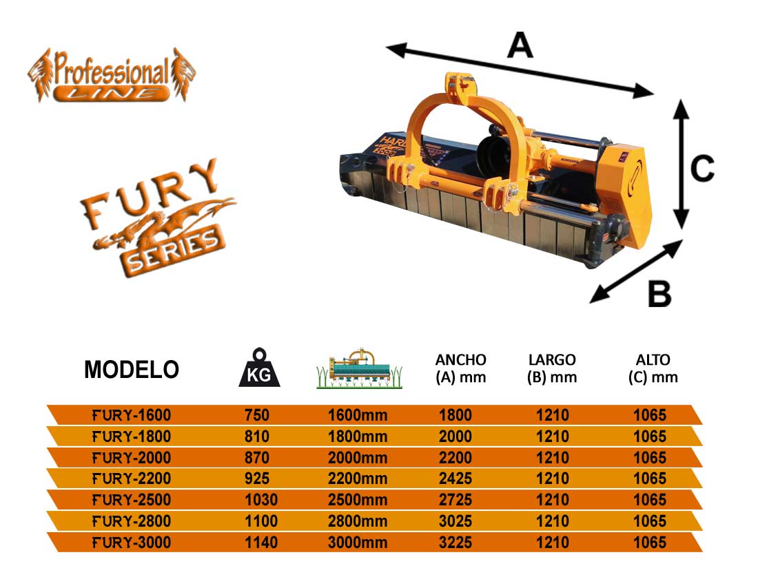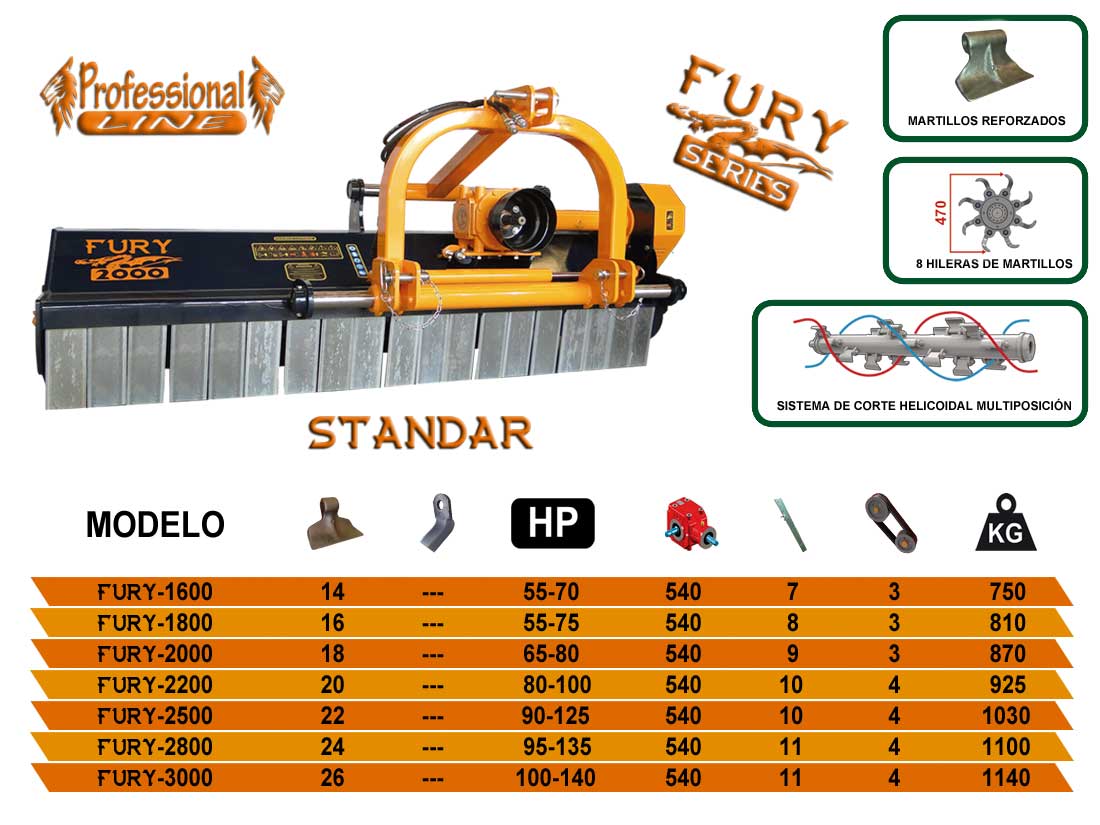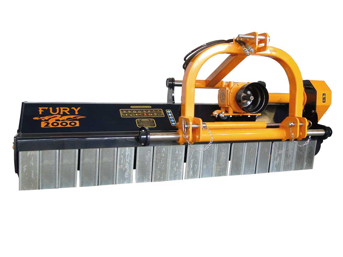 Trituradora de restos de poda profesional extra-reforzada modelo FURY de la marca Perendreu versión estándar donde encontraran una maquina ideal para siega de la hierba y el triturado de las ramas de poda hasta 15cm de diámetro. Chasis principal de la trituradora fabricado en chapa de 8+6mm con triple hilera de retenedores internos en forma de “U” fabricados por Perendreu en platina anti desgaste. Palas delanteras de fabricación propia con contorno de pala completamente cerrado, en acabado en base de Zinc con barra de soporte reforzada y una boca de entrada de 320mm. Barras guía de la torreta muy reforzadas y en baño de Cromo de gran longevidad.
